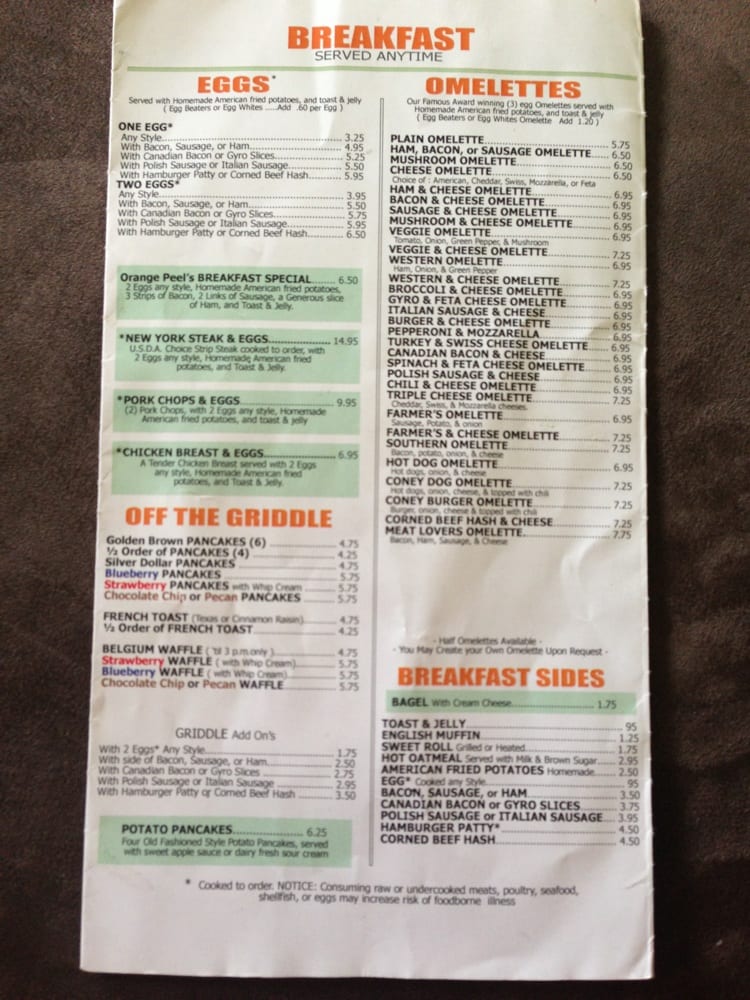 Orange Peel Restaurant in Shelby Township, MI offers a delightful New American Breakfast & Brunch menu. They provide a range of breakfast options such as the Pork Chops and Eggs Breakfast and a variety of omelettes like the Ham Omelette. The restaurant is known for its generous portions, fresh ingredients, and delicious food. Customers rave about the quality of their dishes, such as the bacon burger, BLT melt, and Italian Wedding Soup. The cozy atmosphere and friendly service make it a favorite spot for locals and visitors alike. With a focus on homemade meals and excellent customer care, Orange Peel is a gem worth visiting for a satisfying breakfast or lunch experience.